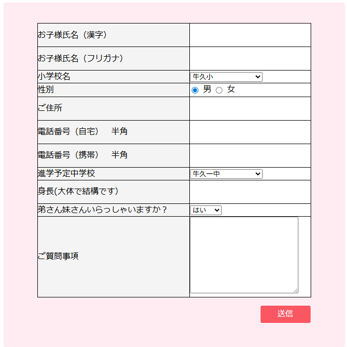 ※システム上、送信ボタンを押すと、そのまま当店へ内容が送られます。